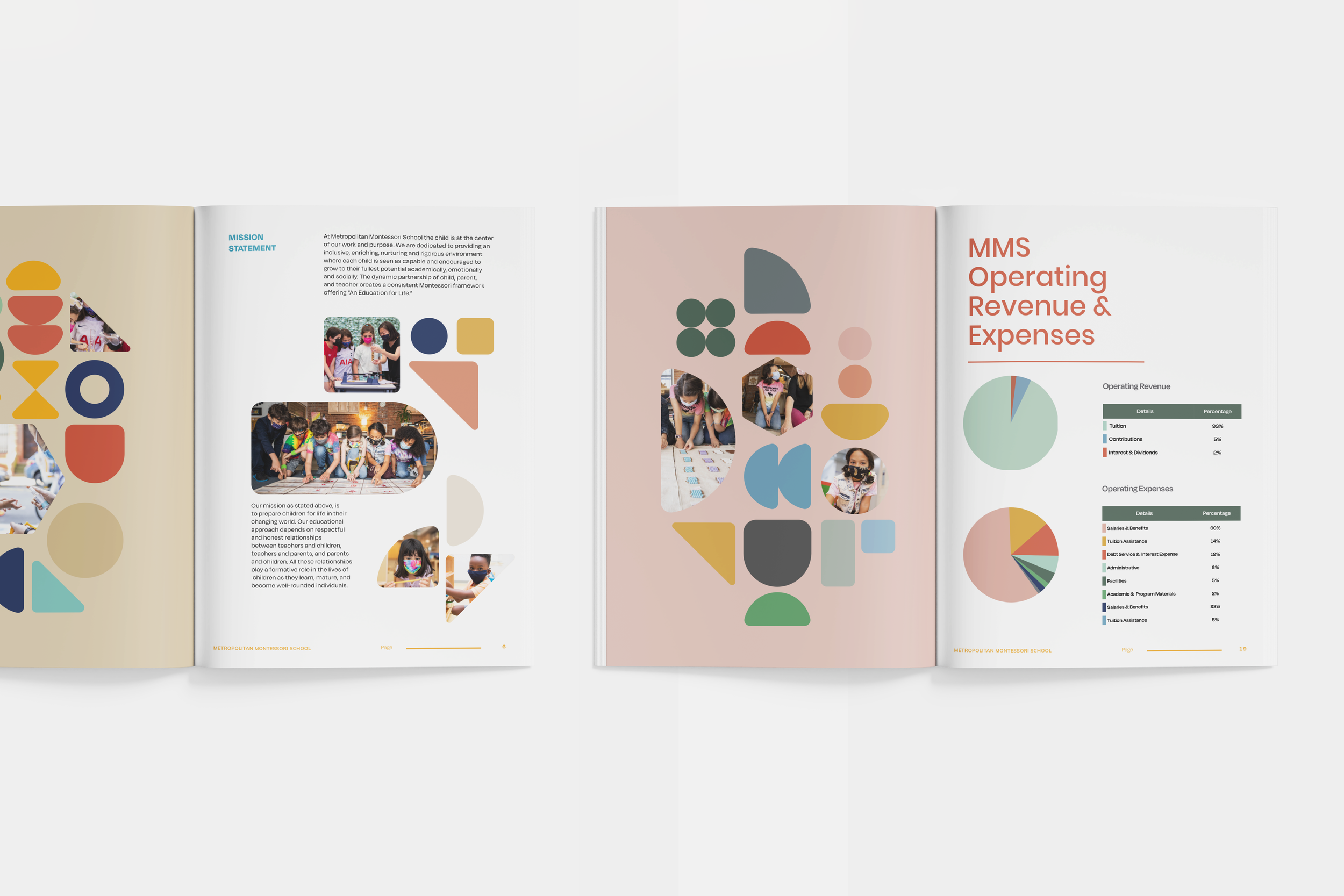 For Metropolitan Montessori School, I led Art Direction and Brand Identity, extending the work across digital, print, and animation. The school’s motto, An Education for Life, became the foundation for a visual system centered on the dynamic triangle of child, adult, and environment. Letterforms arranged within this triangular framework reflect growth, balance, and partnership, while the identity emphasizes inclusivity, diversity, and human connection. Every application—from classroom materials and admissions brochures to animated storytelling—was designed to put the child at the center, echoing the school’s belief that passion and purpose drive lifelong learning.